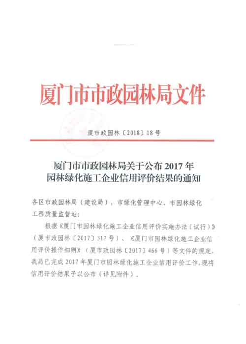 關(guān)于公布2017年園林綠化施工企業(yè)信用評價(jià)結(jié)果的通知-1
