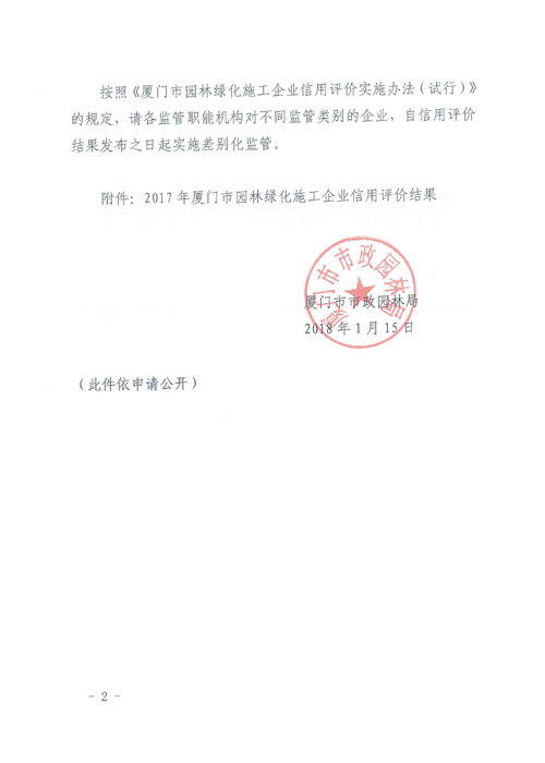 關(guān)于公布2017年園林綠化施工企業(yè)信用評價(jià)結(jié)果的通知-2