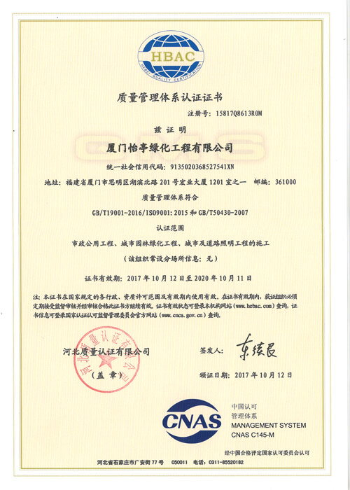 質(zhì)量管理體系認(rèn)證證書